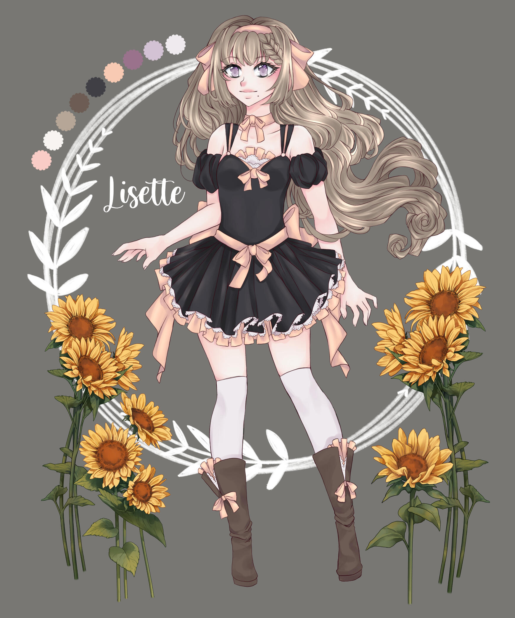 Yes, she is barefoot - she walks on clouds and therefor doesn't need them! She's incapable of feeling temperature differences and shows no reaction to them overall, so it's no issue!Her signature flower is the pink dhalia ❀