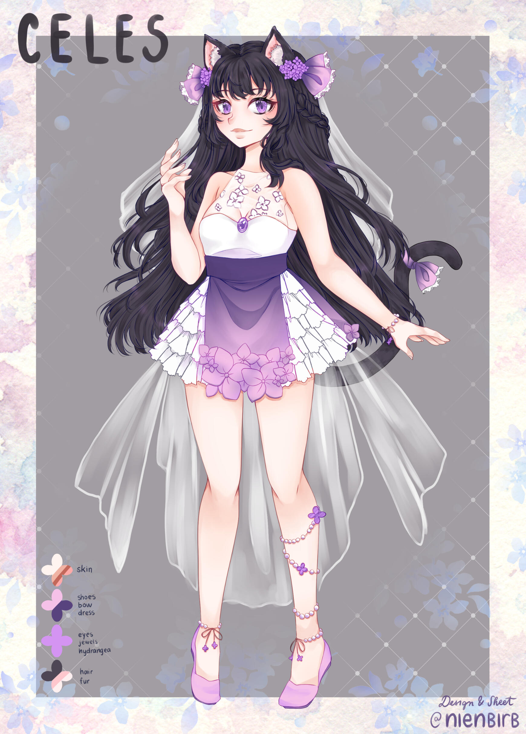 Fitting Elements:She went through a bunch of overhauls and her design (except for hair length and all colours, plus the hydrangea theme) is not super set in stone!