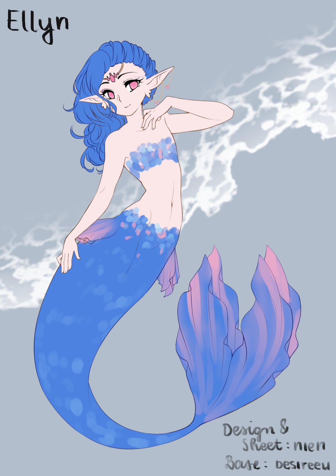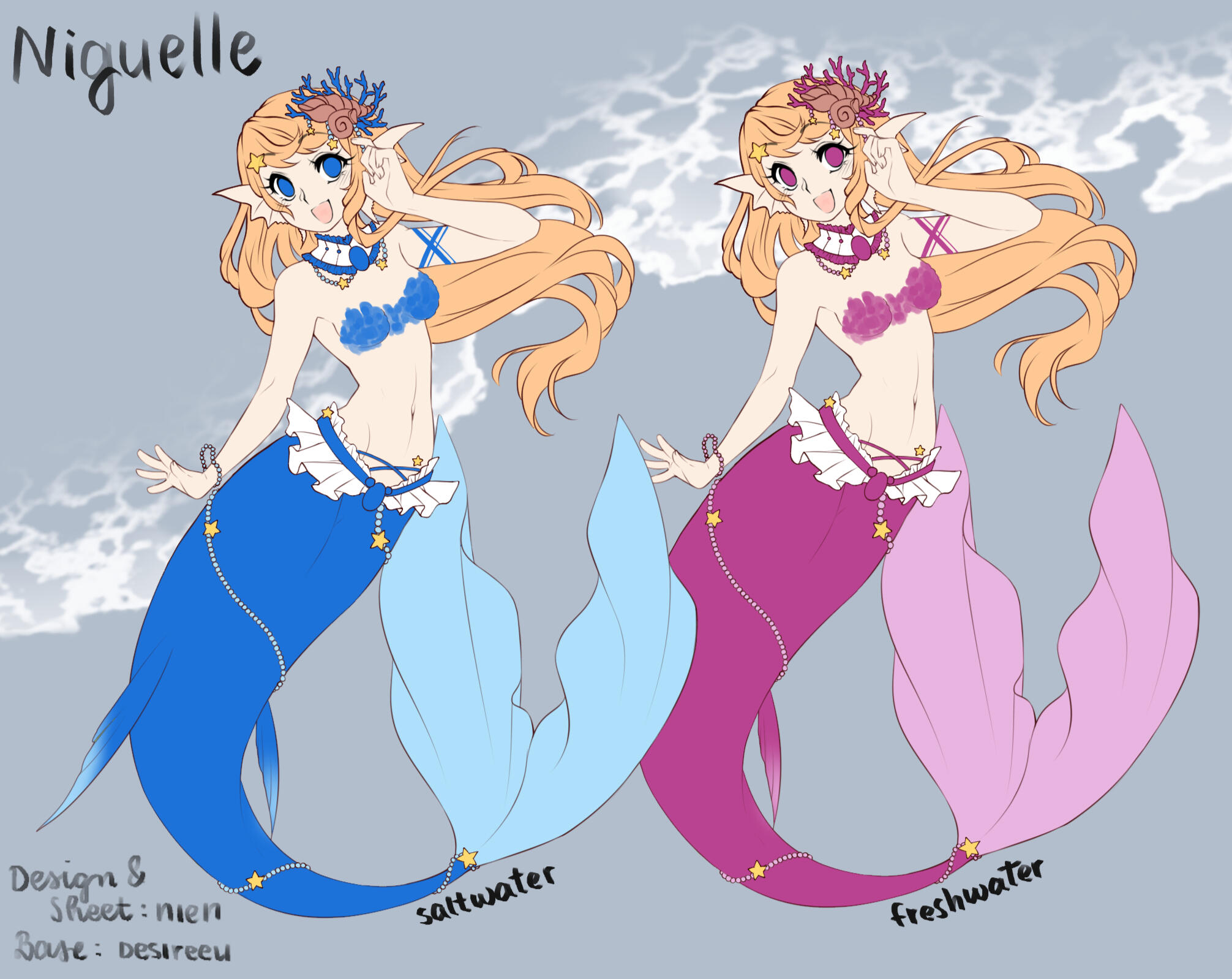 (Niguelle and Ellyn live in the same world!)As the messenger between the two ocean kingdoms, she can breath in both freshwater and saltwater but changes color based on where she is.